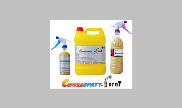 ContraSPATT -0707 ® is a registered product of the company Chemwit Contra Corrosions ®. It is used in welding operations to prevent spatter adherence on the base metal. Once the ContraSPATT -0707 is sprayed around the joints to be welded, hot spatter falling on that sprayed area will not stick to the surface.